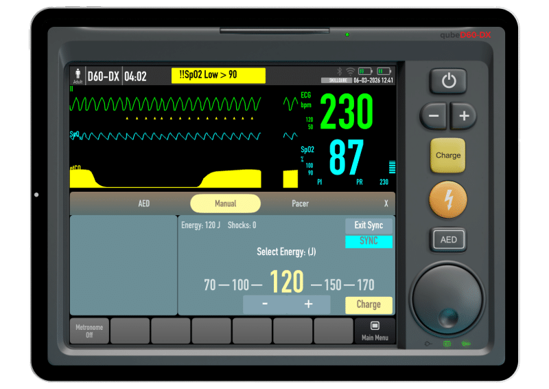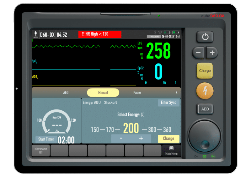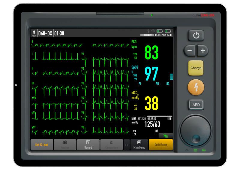 Der qubeD60-DX ist eine leistungsstarke Simulationslösung zur realitätsnahen Nachbildung von Mindray-Patientenmonitoren. Nach dem qubeD3 bietet SKILLQUBE eine zweite Oberfläche, die gezielt die Bedienlogik und Darstellung der Mindray BeneHeart D60- und DX-Monitore simuliert.